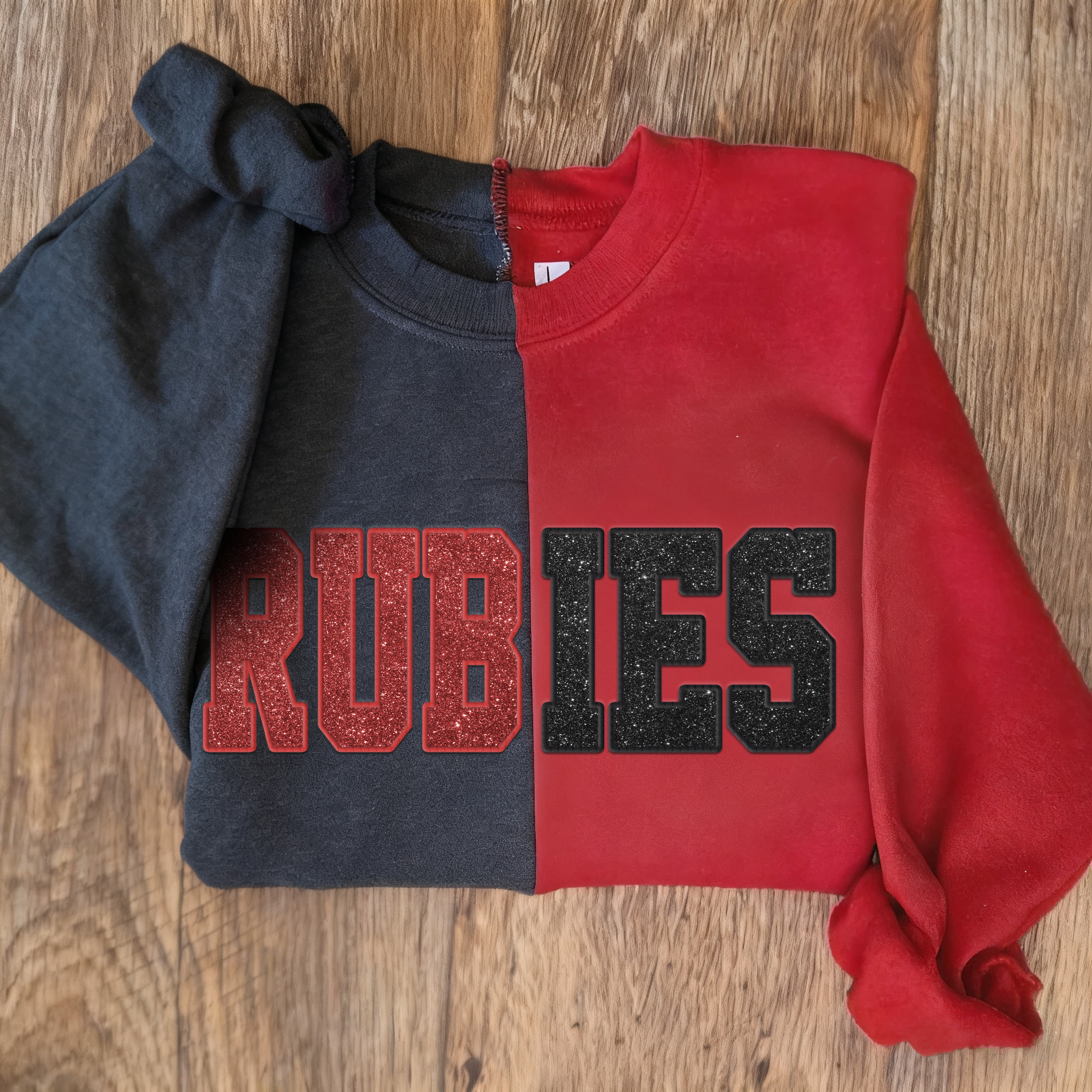 ✨ Stand out in sparkle and style with our Glittered Split Sweatshirt—custom-made for those who love a bold, personalized look. Choose two sweatshirt colors, two glitter shades, and up to four sleeve details to make it uniquely yours. Perfect for game days, spirit wear, or just showing off your personality.