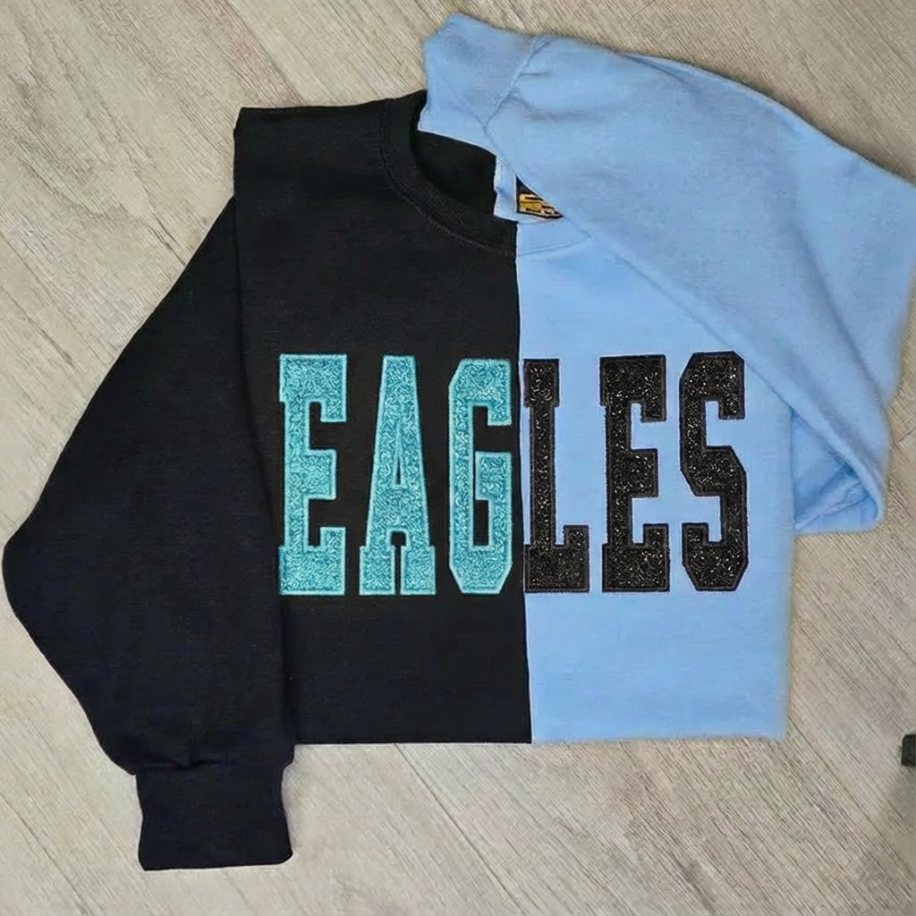 💖Custom Glitter Embroidered Two Tone Sweatshirt🏈
